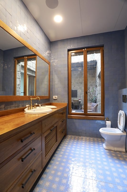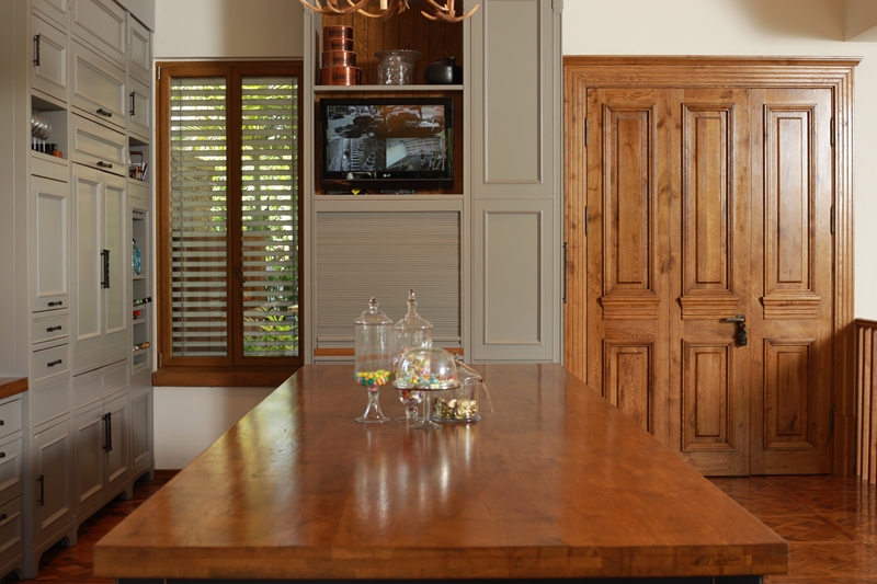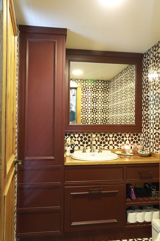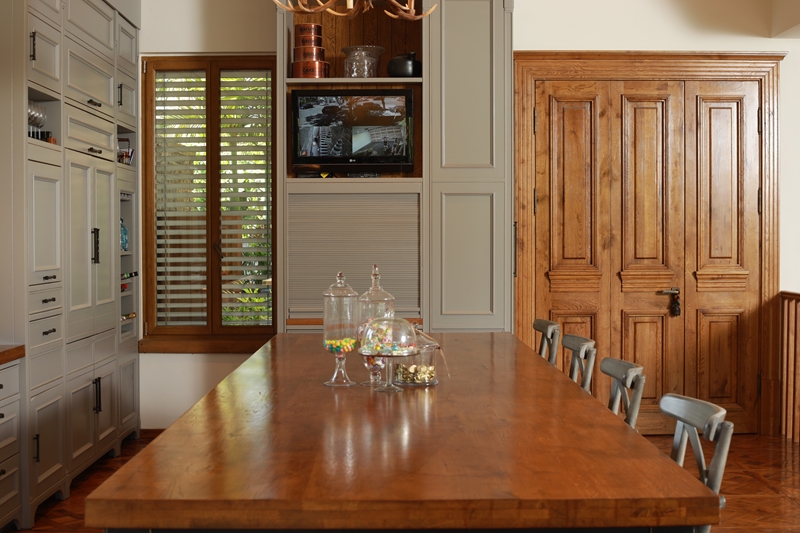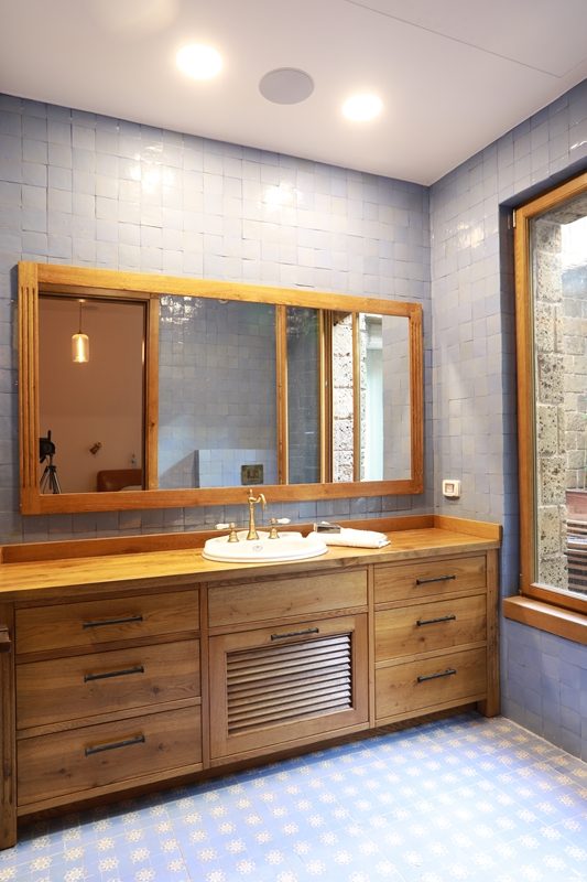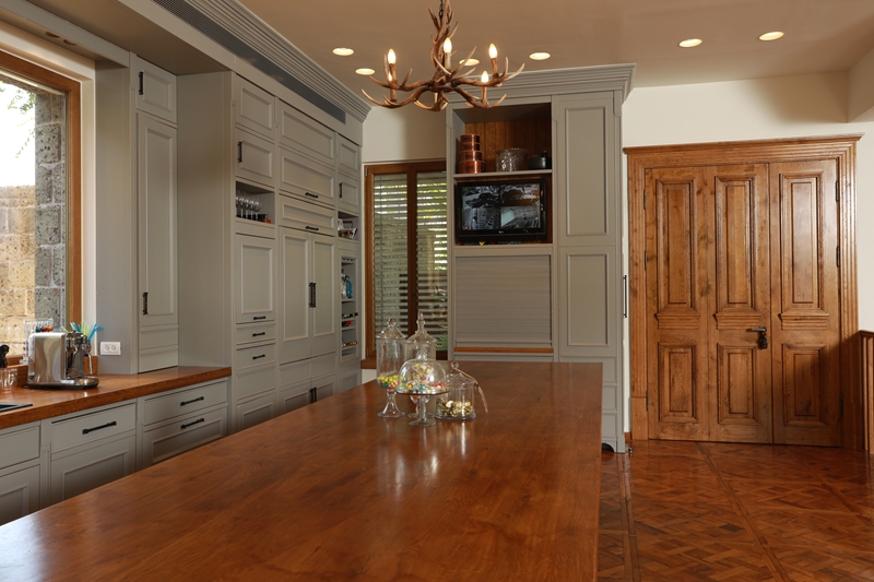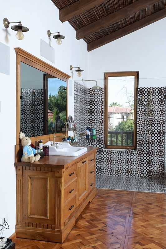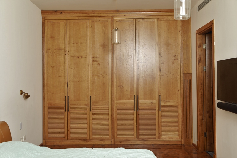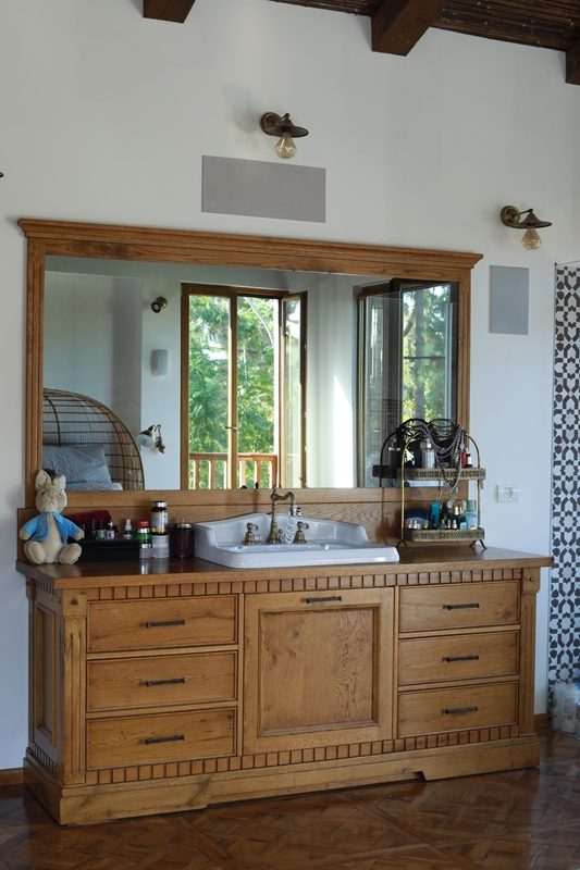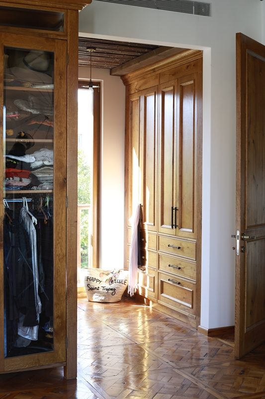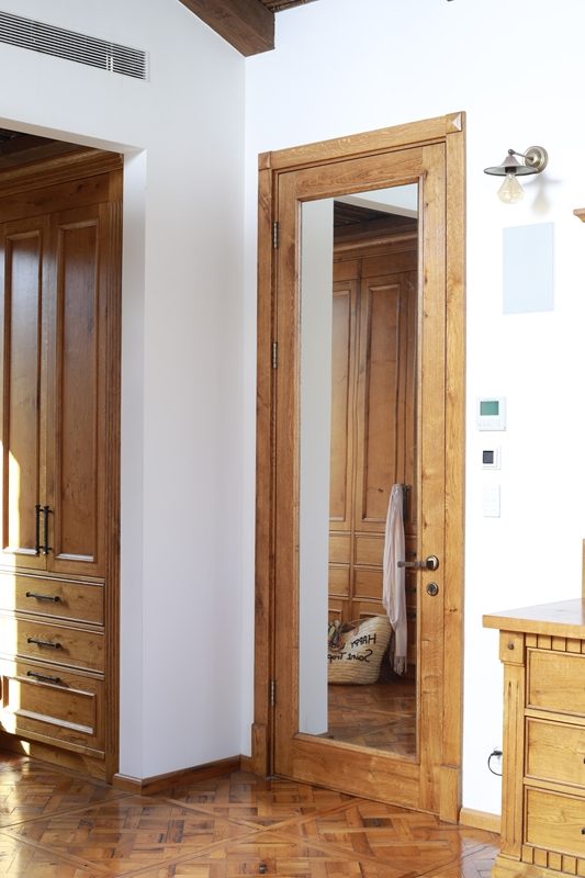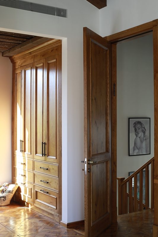 עץ האלון מורגש גם בחדר הארונות, דלתות החדרים, וארון חדרי הרחצה.